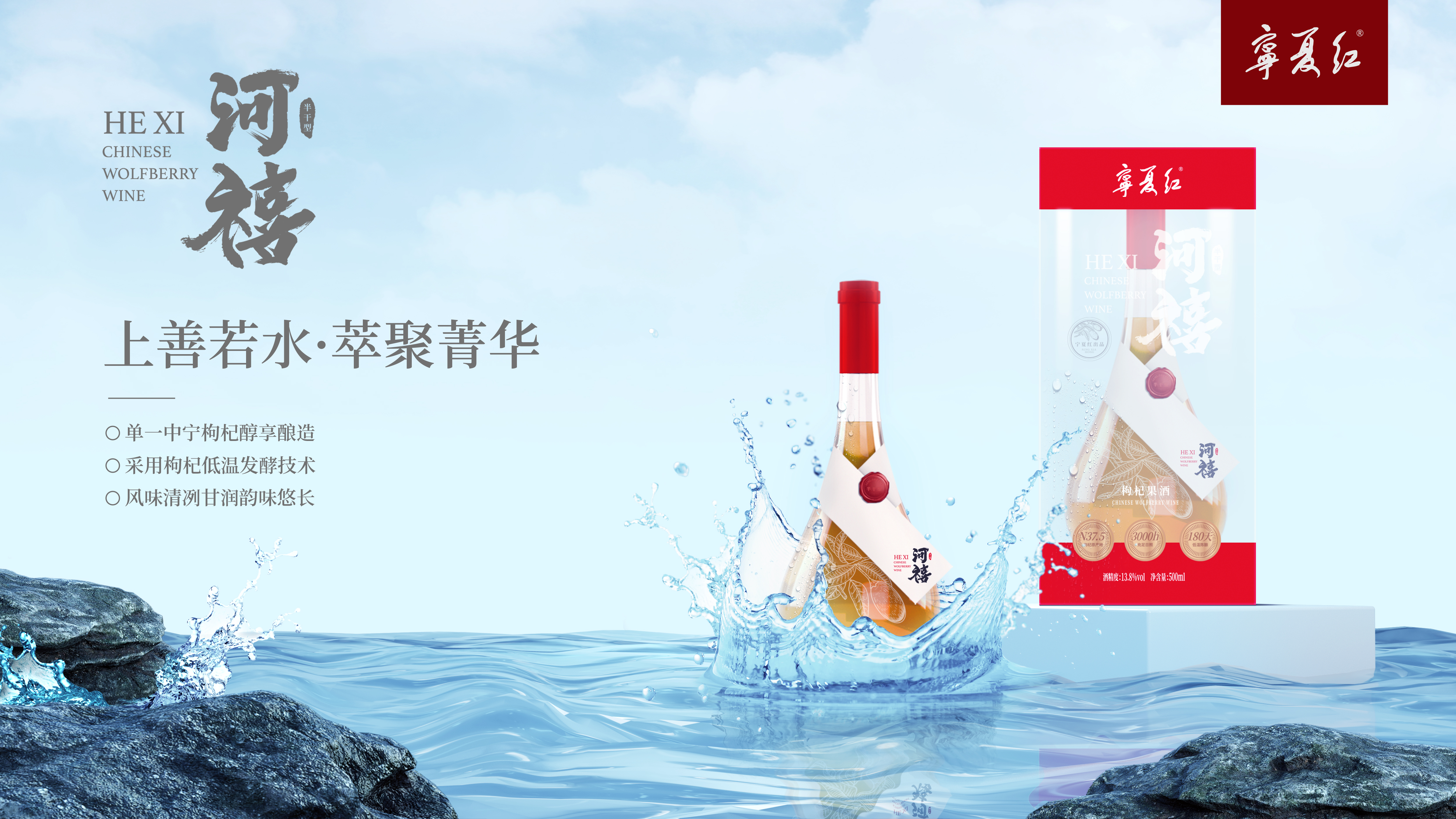 13.8度半干型河禧枸杞酒,100%中寧枸杞低溫發酵釀造,發酵產生馥郁香氣及提升酸度,促進酒體成色成香和營養物質的釋放,再通過法國橡木桶窖藏,口感微甜,甘潤清冽,比較適合大眾口味。